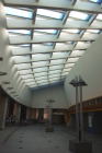 水の流れるホールの天窓からは屈折した太陽光がそそぐ