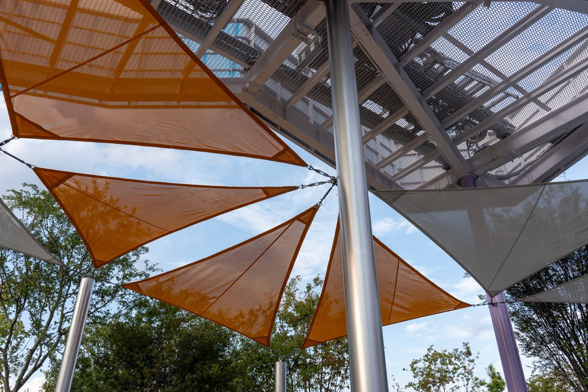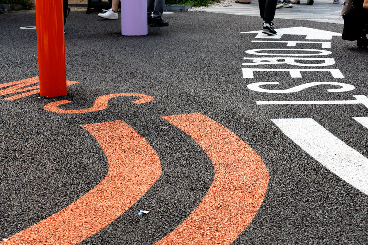 動線上のピクトグラムや色彩は過剰な主張を避けつつ視認性を確保し、訪問者を自然と日陰やベンチへ導く。