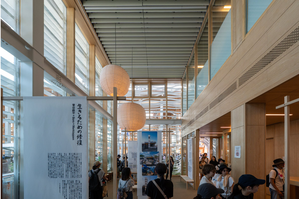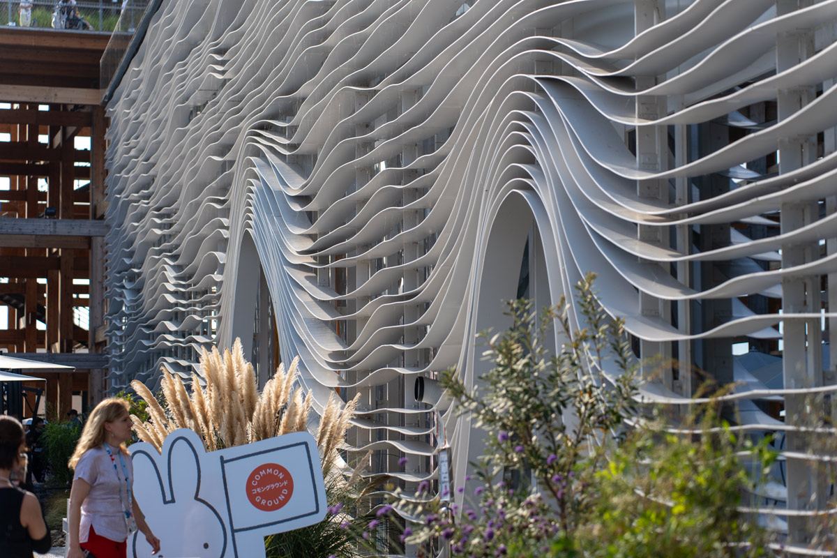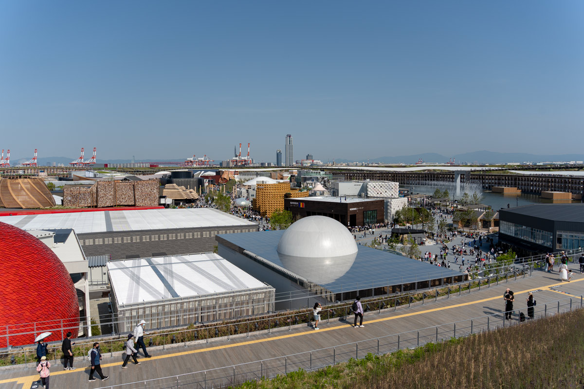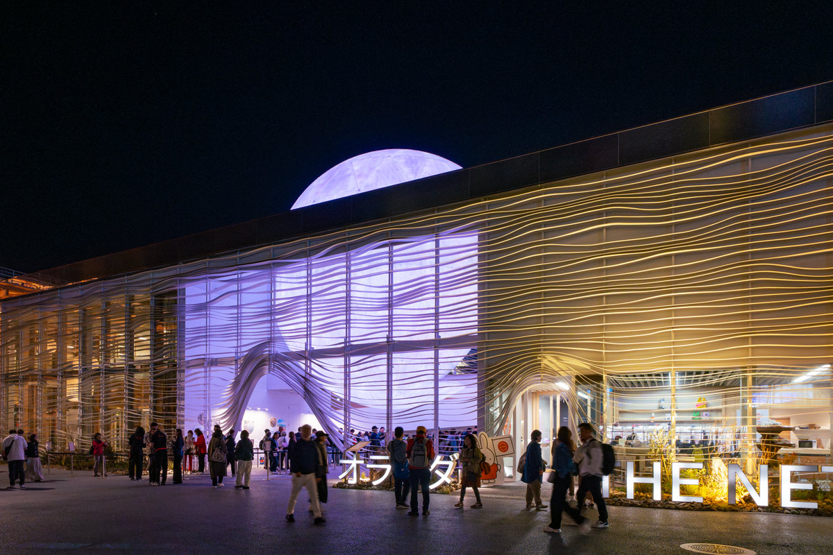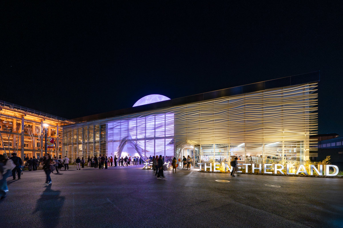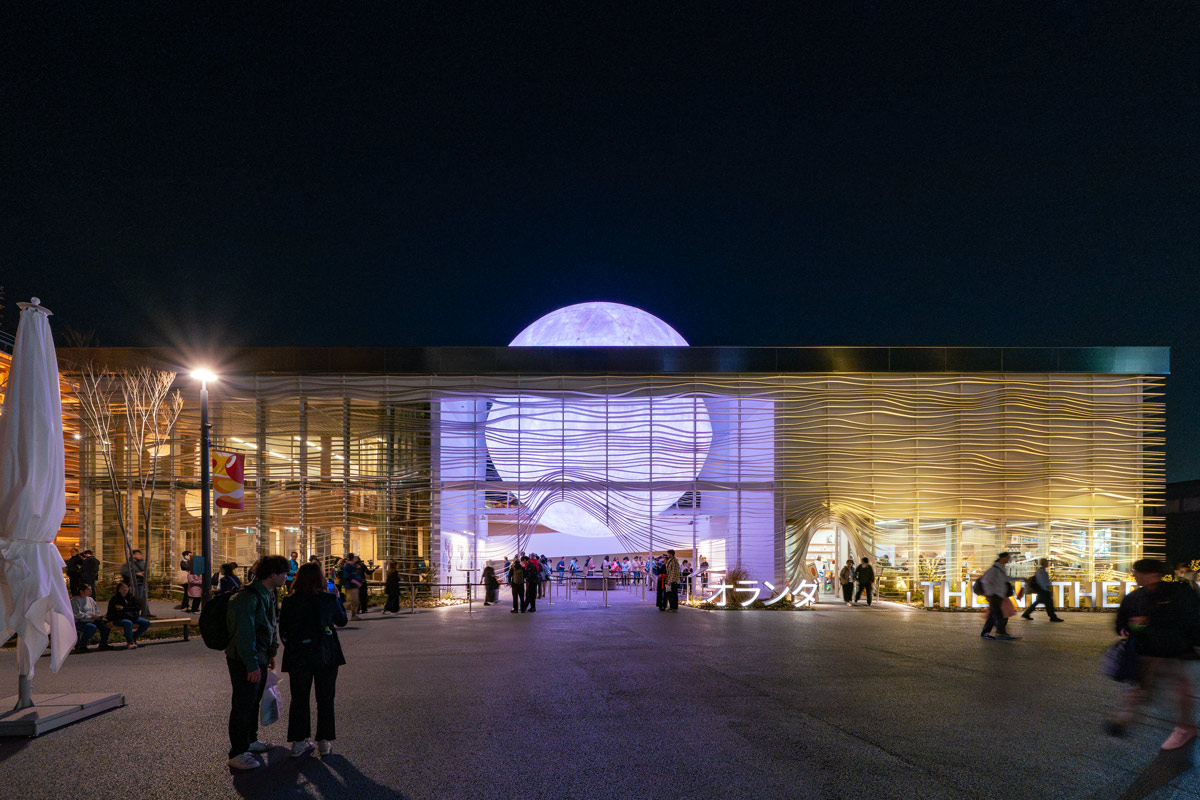 解体・再組立を前提に可視化されたボルト・ネジ接合で設計されたオランダ館は、閉会後に淡路島への移設の基本合意が成立しており、循環型建築の理念を実装する好例となった。