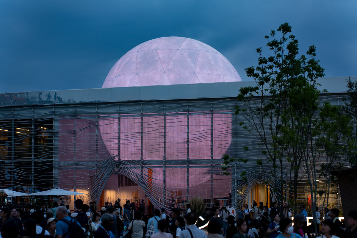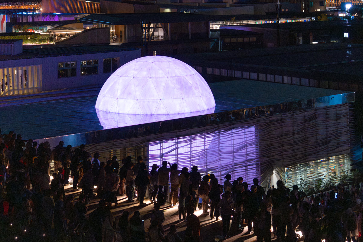人口の太陽を表した球体は、岡本太郎「太陽の塔」の黄金の顔と同サイズの直径10.6メートルで作成され、過去・現在・未来をつなぐモチーフとなる。