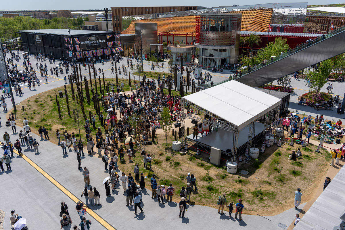 プログラム上の主役は当然ステージだが、細部の作法は「余白」をつくることにある。座席をもたないことで来場者は立ち位置を自ら選び、近接して熱量を共有することも、遠巻きに短時間だけ観ることもできる。仮設でありながら素材や植栽に未来の行き先を与え、建築の寿命を会期の外へと延ばす。集まりやすく散りやすい動線、軽量架構、素材循環という三要素が、祝祭の場にふさわしい開かれた風景をつくっている。