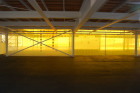 床材などの軽量化をはかり、梁を排除、外壁にビニール材を用いることにより境界を排除した。