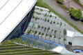 階段状の外側部分にはツツジが植えられ、毎年5月頃には色鮮やかな花を咲かせ、両側にブドウが植えられたエントランスには水路が施され、夏には豊かなブドウ畑が訪れる人の目を楽しませる仕掛けも。