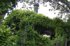 蔦が生い茂り、建物の輪郭とわずかに構造物が見えるだけになっている