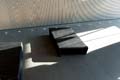 黒いキューブ直下の2階外周のほとんどを構成するガラスウォールはキューブより建物中心側に収められており、人工地盤状の部分を土台として黒く巨大な直方体が浮かんでいるようなプロポーションを演出している。