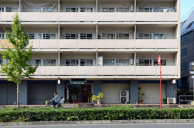 今となればただの古いマンションのようだが、この建物が完成したのは昭和33年。当時の市街地建築物法により定められた、高さ制限いっぱいの31メートルに及ぶ建築はまだまだ少なく、周囲の人々からマンモスアパートと呼ばれた。