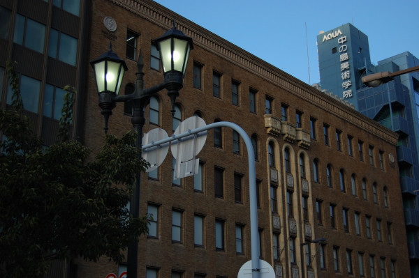 北面が土佐堀川で、川辺との高低差を埋めるためスキップフロアが採用されている。社内コンペで本社社屋を建設できるところがうらやましい。
