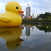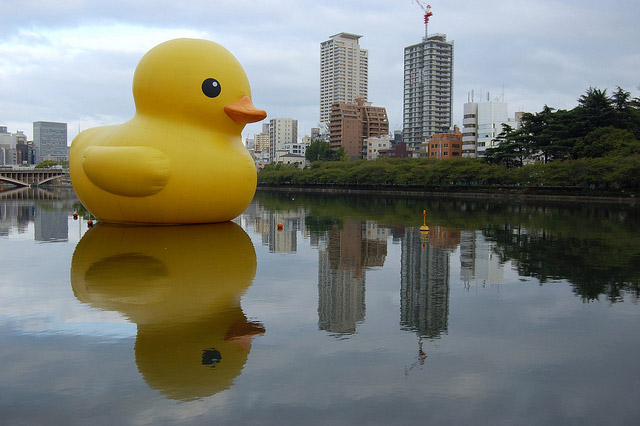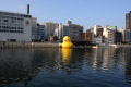 フランス、ベルギー、ブラジルなど、世界中を旅してきたヒヨコのような黄色い子アヒル、ラバーダック(Rubber Duck/Florentijn Hofman)が水都大阪2009・八軒家浜会場に登場。