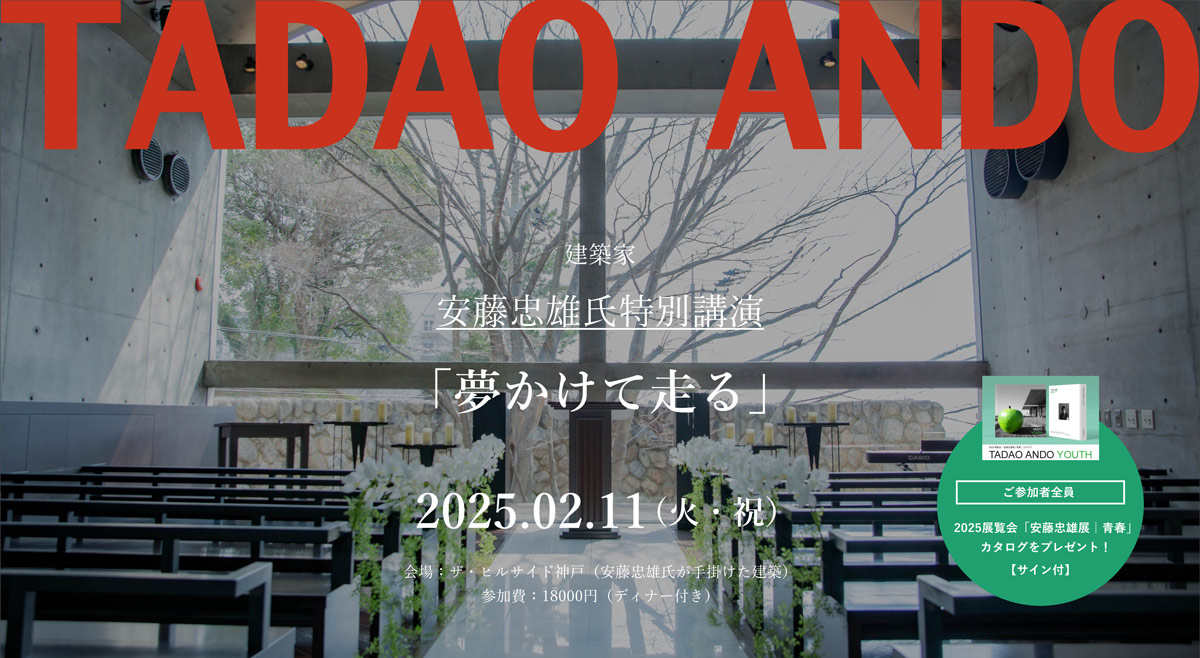 - 参加者全員に2025展覧会「安藤忠雄展 | 青春」カタログ(サイン付)をプレゼント。